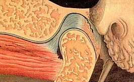 mit der Gelenkpfanne. Darunter das Kiefergelenkköpfchen. Dazwischen liegt