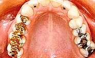 Auf diesem Bild sind Amalgam- und Gold-Füllungen zusammen in einem