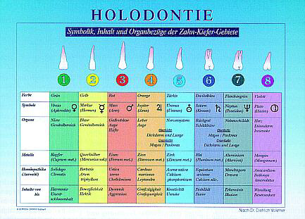 der Zähne mit den Farben, den Symbolen und den Metallen