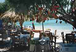 Dem Boot entsteigen, zu unserer Verwunderung, drei Männer, von der Grösse des Kahns her hätten wir nur einen einzigen Fischer vermutet - Kerle wie Bäume, Typen wie Bud Spencer, nur noch etwas korpulenter. In einer kleinen Plastiktüte bringen sie, so sieht es aus, ihren Tagesfang herein. Trotz des nicht gerade berauschenden Fanges oder gerade deswegen, beschliessen sie wohl ihren Frust mit Essen und Trinken zu beheben. Eine Flasche Rotwein verschwindet innerhalb von zehn Minuten in den gewaltigen Leibern, auch die Essensportionen sind nicht gerade zum Abnehmen gedacht. So tafeln sie mit Bravour, aber wer weiss, was sie von ihren Frauen zu hören bekommen, wenn sie mit diesem Fangergebnis leicht angesäuselt den familiären Heimathafen ansteuern