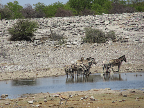 an den Wasserstellen, von denen die meisten künstlich angelegt