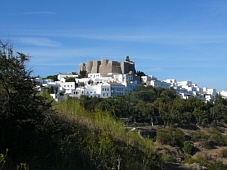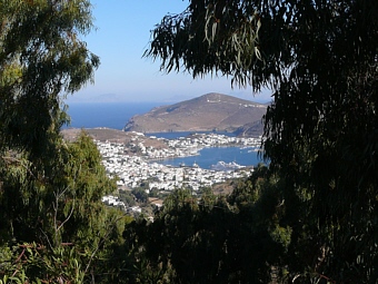 von Patmos einläuft. Hoch oben grüsst zur linken Seite der