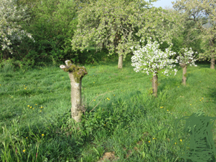Bild möchte ich wie folgt titulieren:Vergangenheit und Zukunft; hier der tote Baumstumpf und dahinter das blühende Bäumchen |